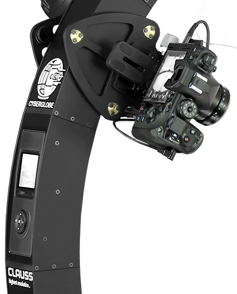 Der Kameraausleger verläuft halbkreisförmig um das Drehzentrum des Drehtisches und integriert sowohl die Gerätesteuerung als auch die Antriebsmechanik für den Kamerawagen. Der Kamerawagen bewegt sich auf Rollen entlang des Auslegers in einem Bereich von ±55° und kann in über 38’000 Positionen adressiert werden.